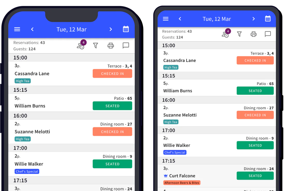 Stay on top of your restaurant’s schedule with real-time views of upcoming reservations across all devices.