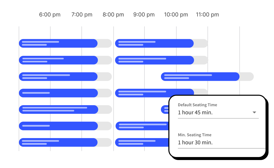 Use our intelligent algorithm to automatically find a place for new reservations by shortening their duration when your restaurant is getting full. Increase efficiency, returns, and occupancy – define your own rules to automate what was previously done by phone.